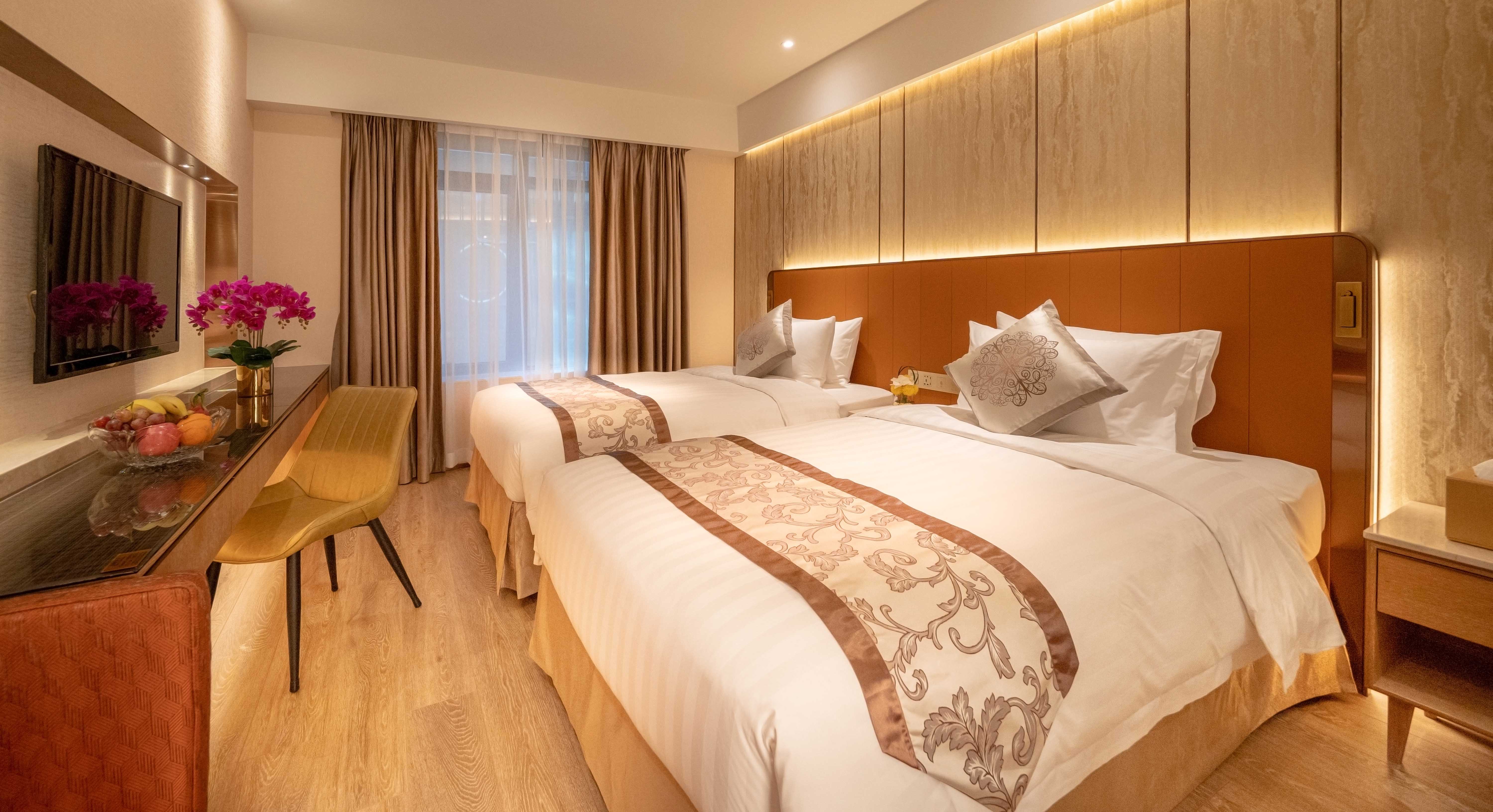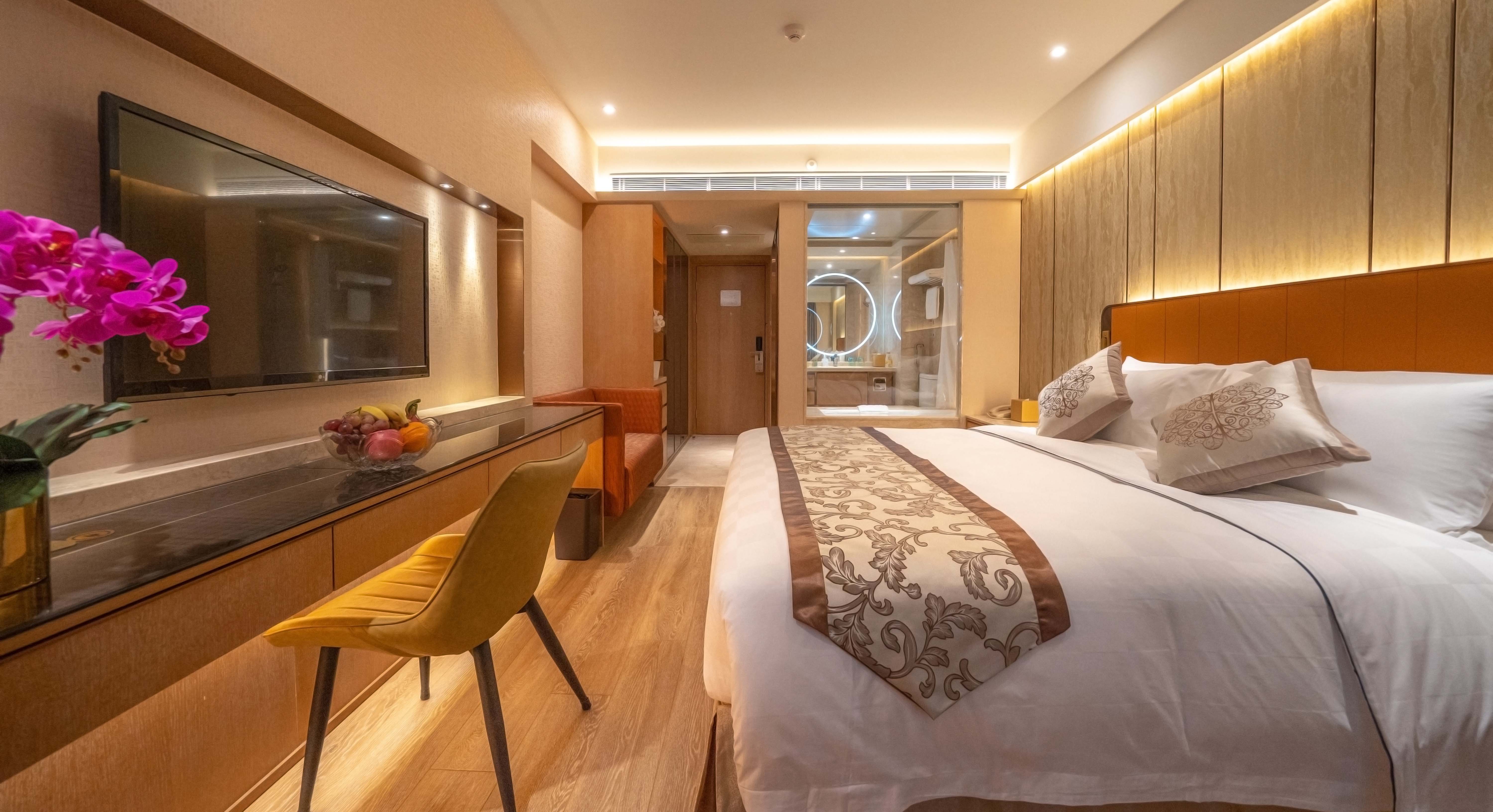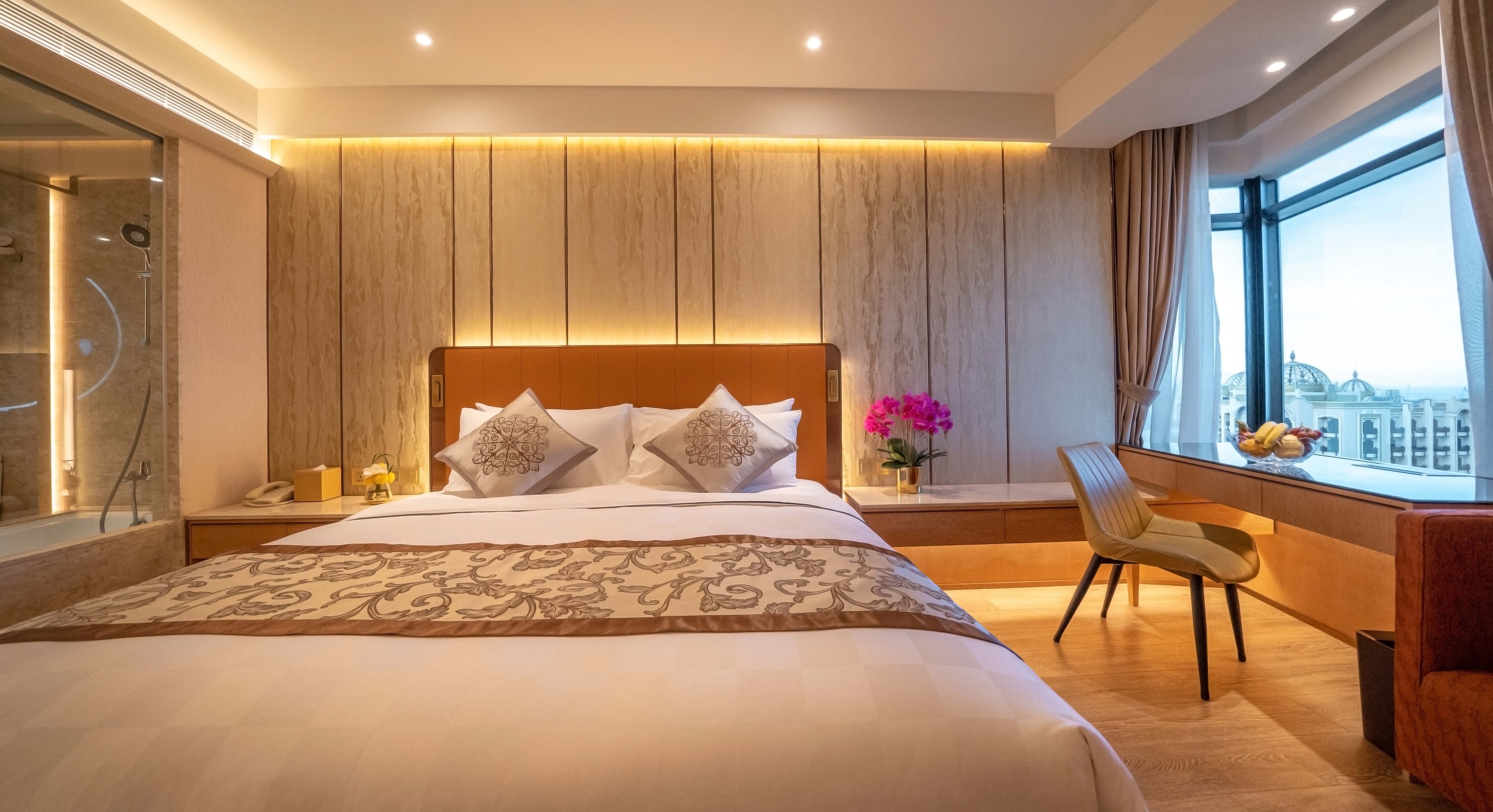 房間寬敞舒適,設計完美利用光學元素配以暖色系柔和色調,提升房間空間感,浴室以雲石設計作點綴,盡顯高貴獨特氣派之餘更帶有時尚感。
